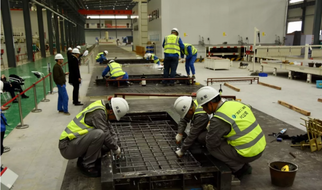 安装预埋件的误差不能超过5毫米,是这次比赛中的一大难点。另外,构件需要前后经过两次浇筑,工艺较为复杂,但也解决了传统一次性浇筑容易产生的空鼓、蜂窝等墙面质量问题。