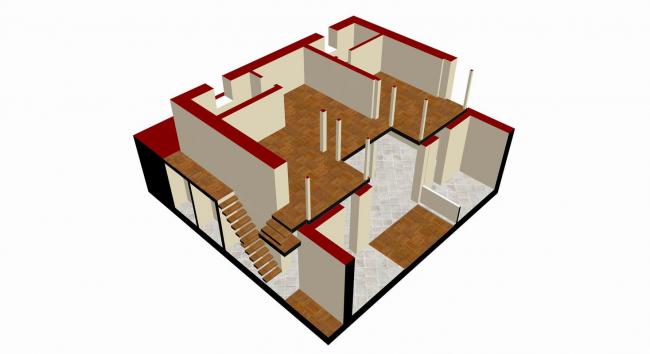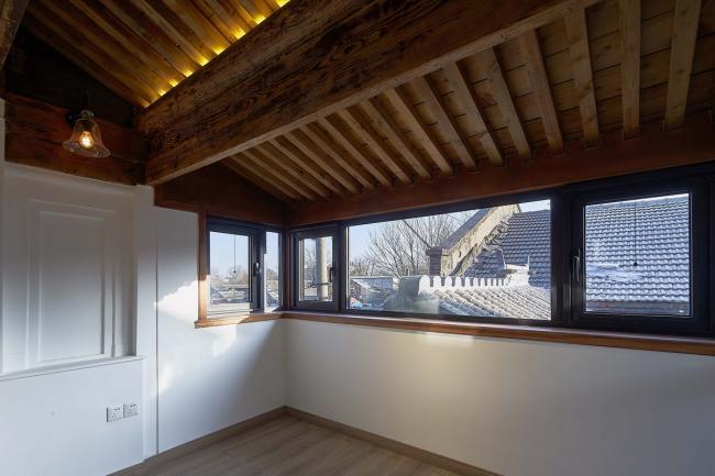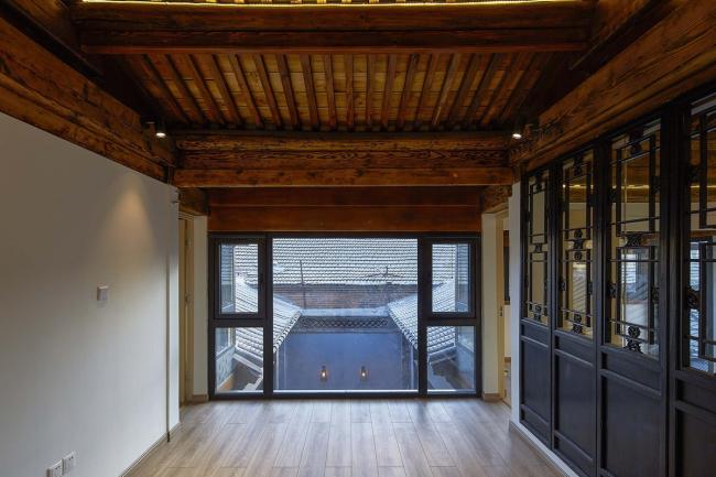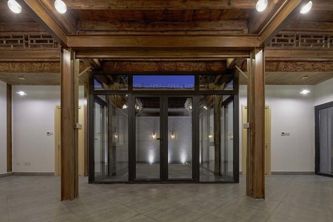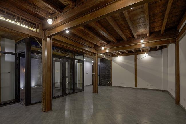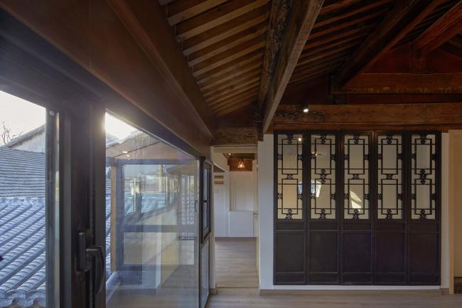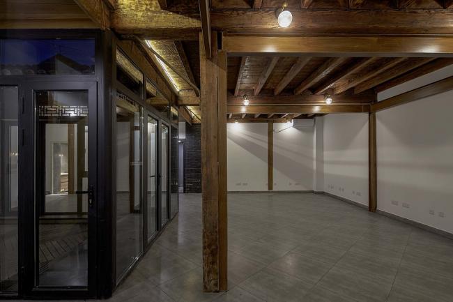 原宅院落由两层三开间的正房与单层双开间的东西厢房错落有致地组成,与南向院墙共同形成一个方正的庭院。房屋是由旧时常见的木构框架与砖墙围护支撑结构,改造基本沿用了清代的庭院布局并保留了原状木结构。将原有建筑内部的细小隔断打通重新构筑了灵活的使用空间。