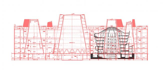 该城市博物馆则是由Bernard Tschumi Architects与天津城市规划研究设计院(TUPDI)联合合作设计的。这是该建筑师事务所在中国的第一个大型建筑建筑项目。而滨海文化中心的总体规划是由GMP设计,包括由MVRDV设计的图书馆也会在未来开放。
