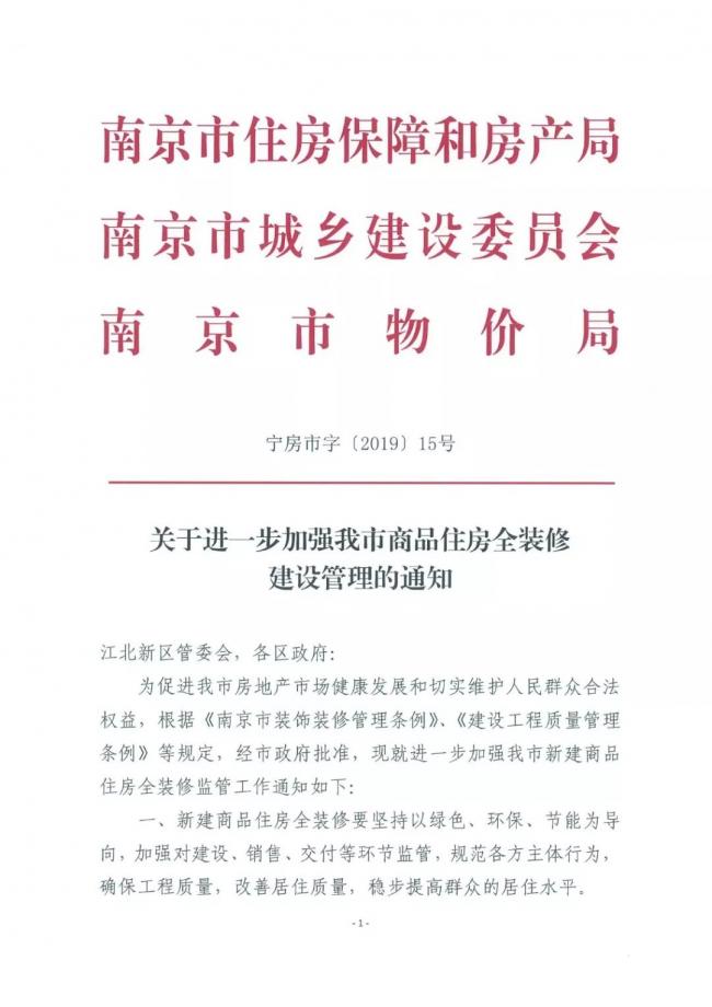 “精装修”变“惊装修”,随着越来越多的精装房入市,各种矛盾频发。为完善南京市商品住房全装修从设计、建设、监管、销售到交付等全过程监管流程,规范全装修各方主体行为,确保全装修质量,1月19日,南京市正式出台的《关于进一步加强我市商品住房全装修建设管理的通知》(以下简称《通知》)明确,现场公示的样板房必须在项目交付后3个月才能“拆除”,装修保修期至少两年。