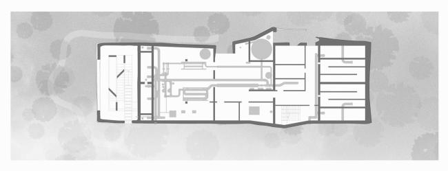 处理厂的设计看起来像是用实体雕刻而成的。无窗立面上的裂缝能够吸引好奇的游客,通过一个洞穴状的空间进入,这个空间看起来像是从建筑的底部切开的。