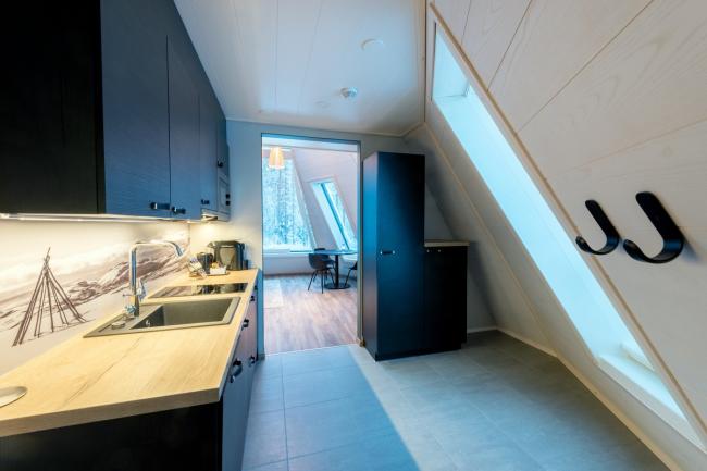每栋房屋包含两个40平方米的客房单元。其中的设施条件包括双层通高的起居室,带玻璃屋顶的全景官司阳台,厨房,单独私人的桑拿浴室和室外温泉浴池露台。