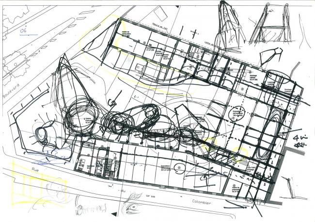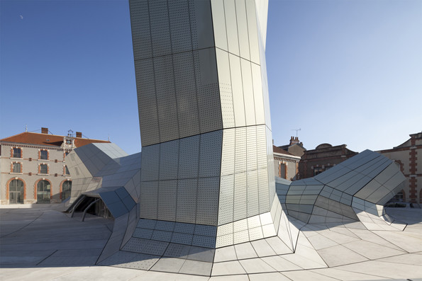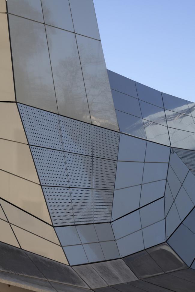 整个建筑理念最初是来源于整个场地的特性,基于这点设计师决定了几种介入混合的表皮设计。然后确定了两个主要的网格表皮,也全是来自于该场地的较早的历史背景。运用汇合相遇和扭曲这两种设计手法将几何形状的进行一定的变形处理,扭曲聚变的表皮设计,彰显了FRAC文化中心的代表未来以及前瞻性的建筑特性。
