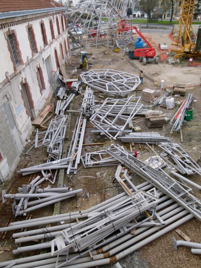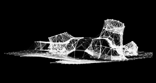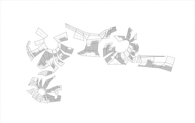 这个室内的庭院被视为一个交流的公共空间,能够连通建筑物的其他的所有建筑空间并容纳FRAC文化中心的部分功能空间。我们的设计目的不仅是创造一个良好的景观,还对该地块的地形表面进行(BIM学习)了一部分的设计与创造。该地形表面遵循两个建筑物网格表皮的介入,将其融合一体,并且将场地的自然斜坡容纳在不同的展览空间分区的入口处。