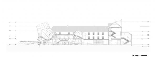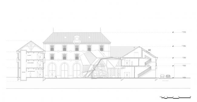 通过拆除现有的Rocheplatte大楼获得的新的开放式城市立面,使得FRAC中心与奥尔良的城市文化长廊相连,内部庭院景观因此成为了一个新的公共广场。我们已将重心转移到了场地的中心。新的建筑介入成为了整个地块新的重心与焦点,也形成了一个新的结构规划、新的建筑几何形状和新的出发点,创造了一个全新代表的建筑,传达了面向整个城市公众和研究人员的新的开放窗口和美好的城市愿景。该项目通过一定的外向性质来诠释建筑本身的存在感。