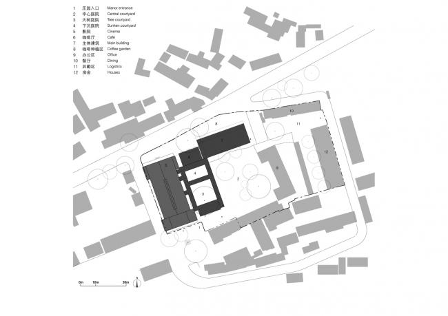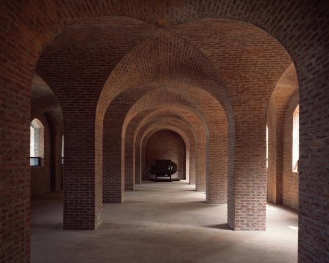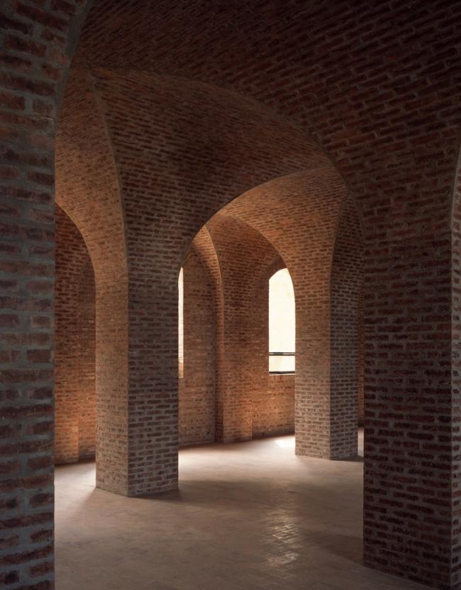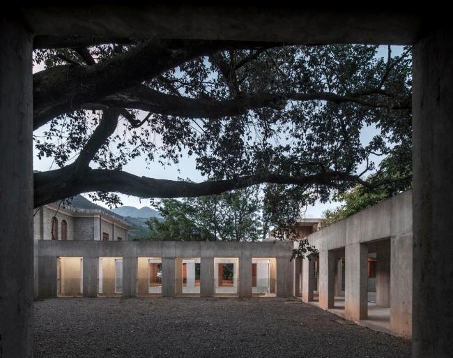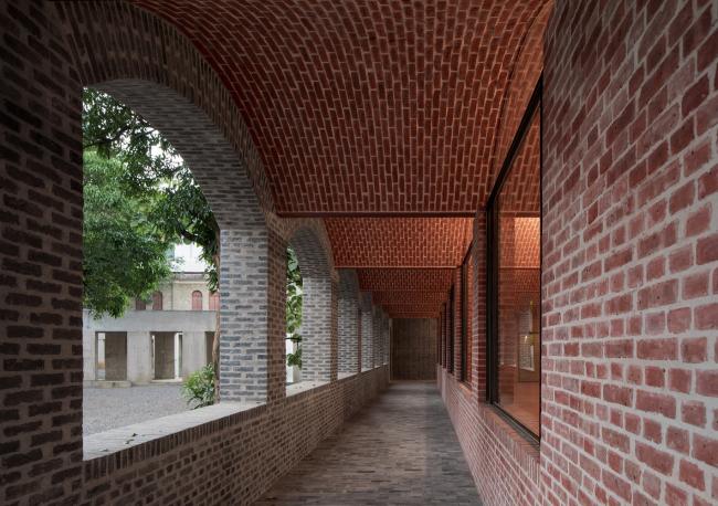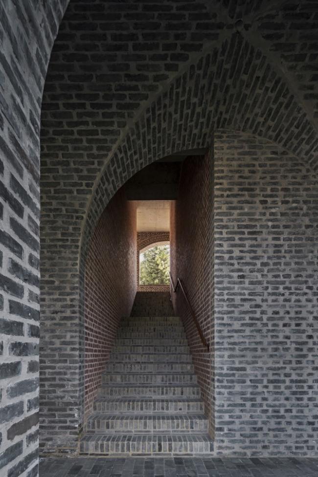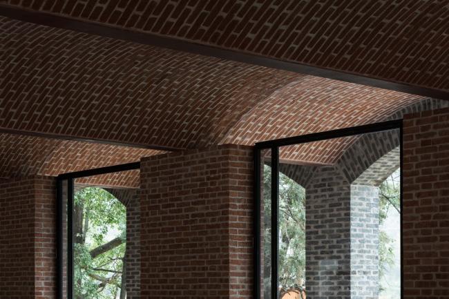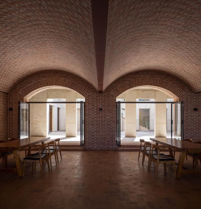 场地由两组院落构成,其中有许多繁茂的大树,以及一座建于八十年代已经废弃的电影院——一栋灰砖建筑。场地里、村落中及周边的大多数建筑都是砖的建筑,场地附近有一座仍在烧制灰砖的砖窑。这些当地特征,触发了设计用砖来建造的初始愿望,时至今日砖砌体仍是当地最主要的建造方式也赋予了采用它的合理性。而砖也引发了拱这一结构形式在建筑中不同方式的呈现。
