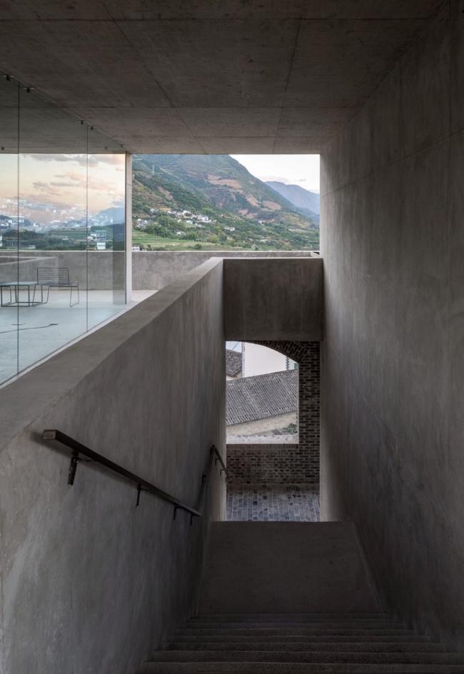 而在最顶层,建筑由砖砌体脱胎换骨为混凝土框架形式以获得最大的透明性,满足多间客房俯瞰峡谷景色的需要。建筑从底层至顶层,以从重到轻的空间形式渐变,塑造了每一层不同的场所特质,回应了功能上从储物、生产到观景享受的多样需求。