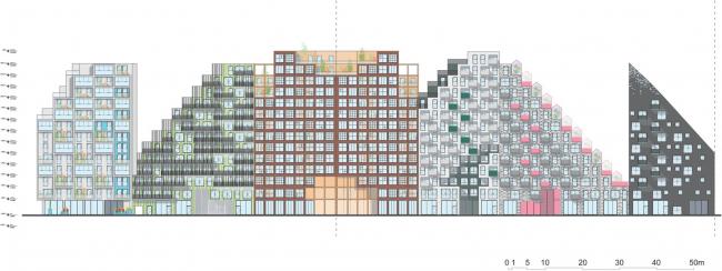 Manuelle Gautrand建筑事务所为阿姆斯特丹的未来主义风格海德公园区设计了一个拥有400套住宅的多功能居住区。这些房屋被划分为9栋建筑,它们围绕一个风景优美的景观式核心进行排布,形成具有独特主题性的公寓楼。每栋房子都是独一无二的,各自拥有不同的体量、材料、颜色和高度。整个项目围绕一个村庄的理念设计而成,目标是想要制定一个具有野心的环境目标,同时将人们聚集在一起重新思考城市生活。