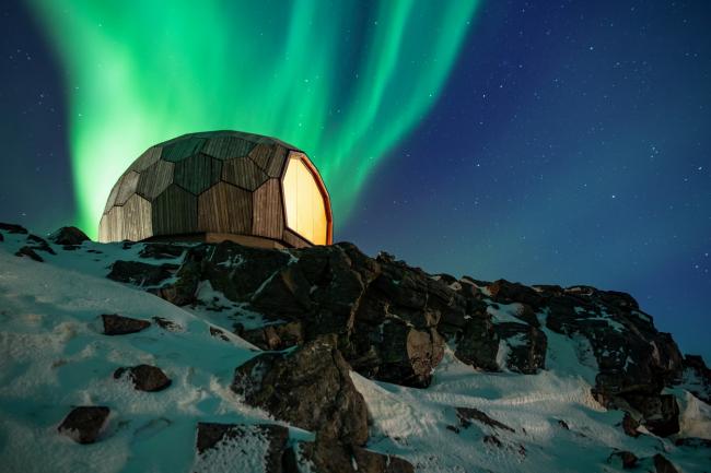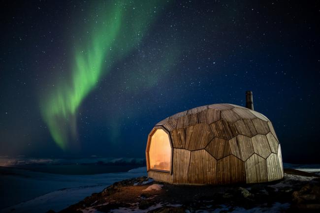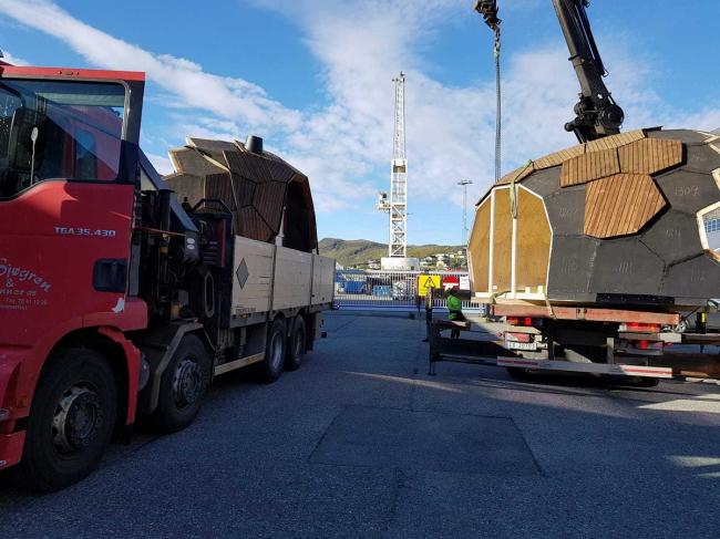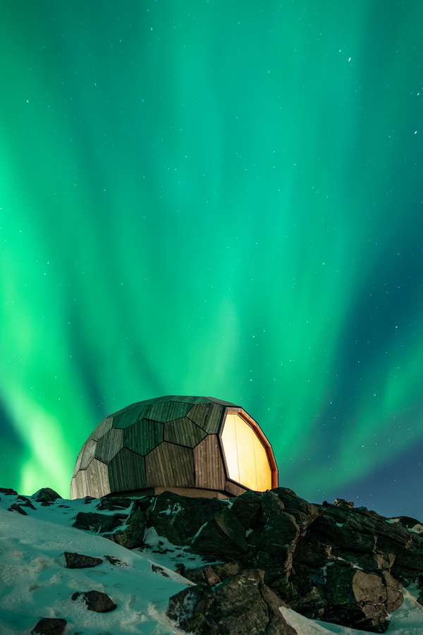 我们将其分成两部分,第一个小屋装在平板车上并开到Storfjellet。然后将它抬起并放在一起组装。窗户,壁炉,坡道和室内家具都运送和安装于现场。到目前为止,第一个小屋取得了巨大的成功,并且显著增加了Storfjellet的游客访问量。第二个小屋将建在Tyven,一个位于Hammerfest另一侧的山上,这两个小屋将起着默默守望城市的角色,并在美丽的Hammerfest北极景观中眺望彼此。