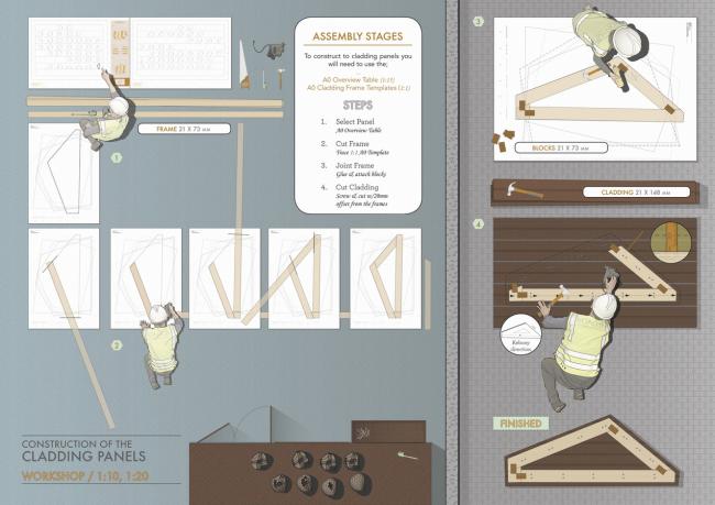 一开始SPINN和FORMAT提出的设计想法其实与客户预期的有很大不同,预算较高,但他们决心希望找到一种合适的方法来创建这个项目。可视化和动画模式是作为众筹努力的重要一部分,以筹集实现项目所需的部分资金。当地企业自愿提供材料和建筑服务,Kebony企业代表则捐赠抵消了外墙材料的预算成本。根据之前的计划,远足协会成员将负责构件结构的组装并将其运送到现场。