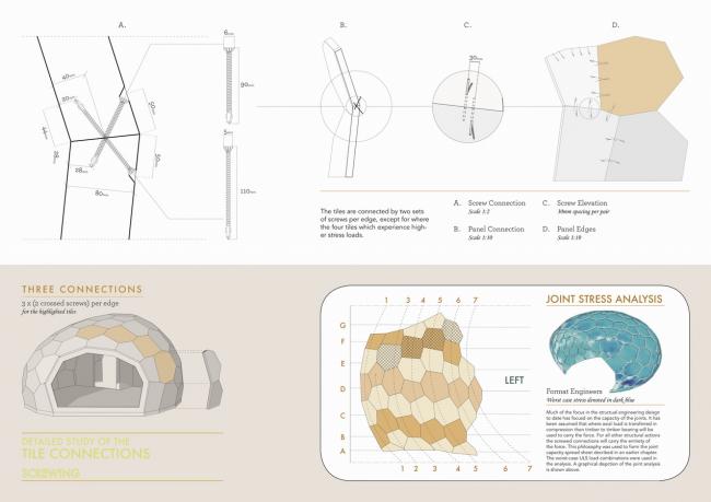 通过Sketchup和Rhino等软件的绘制之后,建筑师所做的初始形状由类似Grasshopper的软件工程师,以及FORMAT开发的一些定制脚本工具进行下一步优化、转换以及最终的呈现。该项目拥(BIM工作)有一个木制的交叉层压木材外壳,77个独特的面板结构,设计师将他们像3D拼图一样拼凑组装在一起。