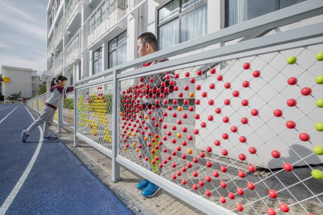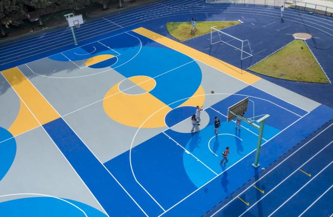 濮家校区是体育传统名校,所以我们和学校都想把运动的元素融入操场当中,在建筑和运动场地设计中出现了高饱和度的颜色和不同形式的线条和几何图形.