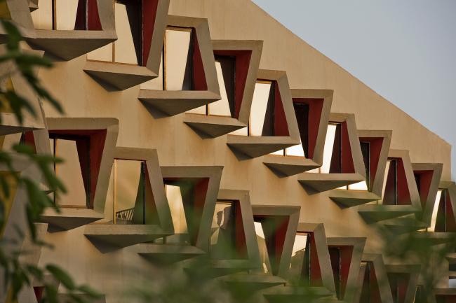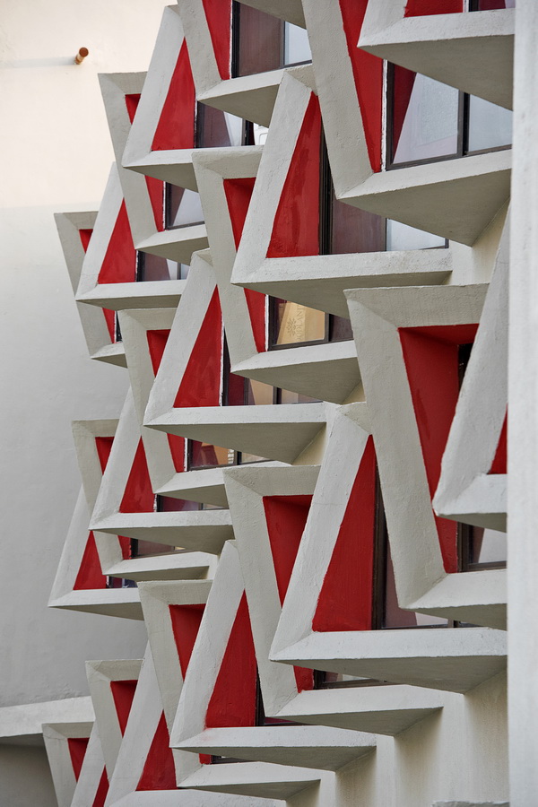 这些细节的设计因素成功创造出了一个绿色节能建筑,并且在最大限度地减少了热量的增加和不必要的能耗。在印度,当太阳位于南半球时,一年中8个月的平均温度都均超过了300华氏度的炎热,这也是为了应对当地多变的气候。而当处于太阳位于北半球的冬季时,这些细节处理可以帮助促进阳光直射到建筑室内,防止产生房间温度较低的情况。