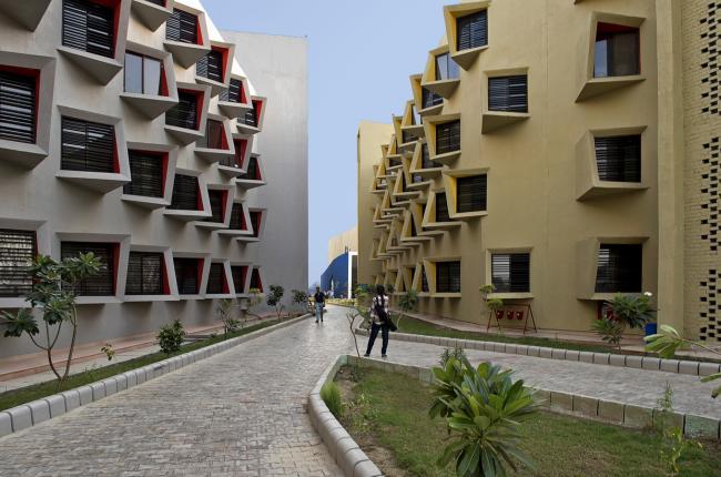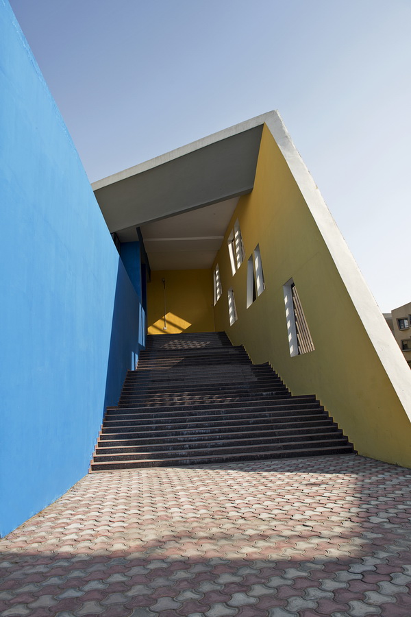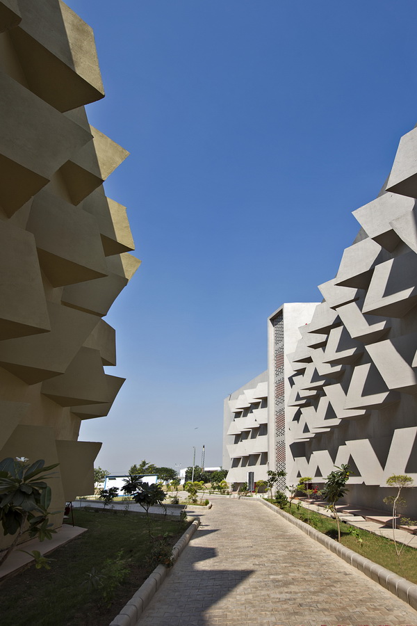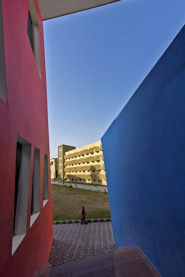 这个项目是一栋学生宿舍,最初的设计灵感是从项目所在地印度——马图拉市的旧城区街道中获得了部分灵感和想法,并且成功的创造出了这样一个完整的有机空间。