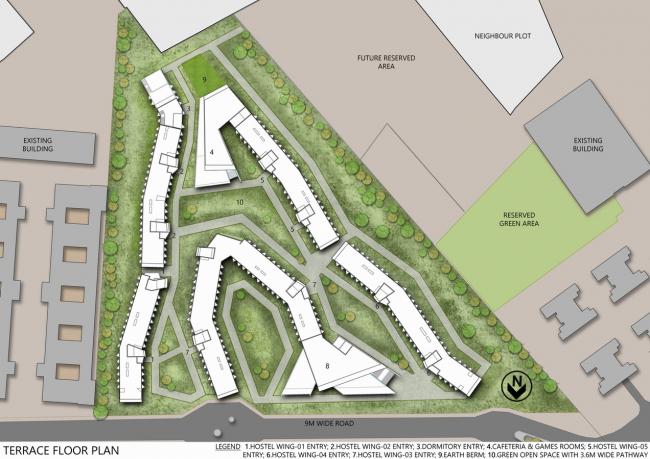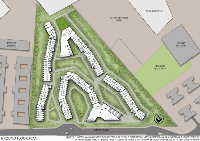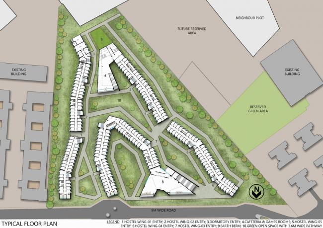 这些新宿舍的地块位于东部和西部的旧有宿舍附近,同时也位于大型的大学校园规划区内,在布局设计的每个部分都有明显的独特风格的标识设计。