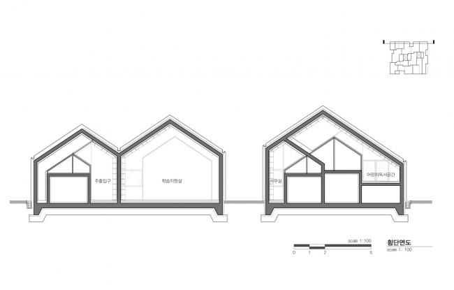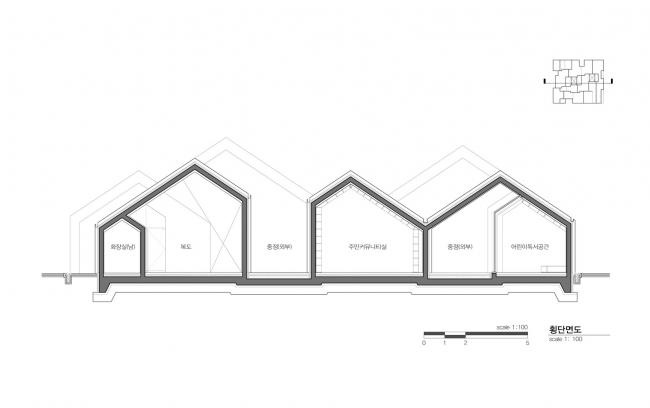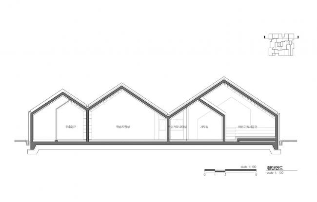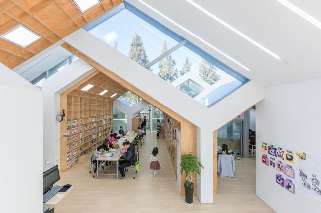 结构不是孤立的三角形,而是相互依赖沟通的结构。这创造了自然和原始的建筑原型,象征着沟通、自然、儿童和成人。空间单元是书架,也就是墙本身。书架构成了空间,同时也成为了一个分区。在整个历史中,这堵墙充当了空间的分隔物。而在Hannae 图书馆中,墙体成为了贯穿空间的迷宫,不断地连接和断开。