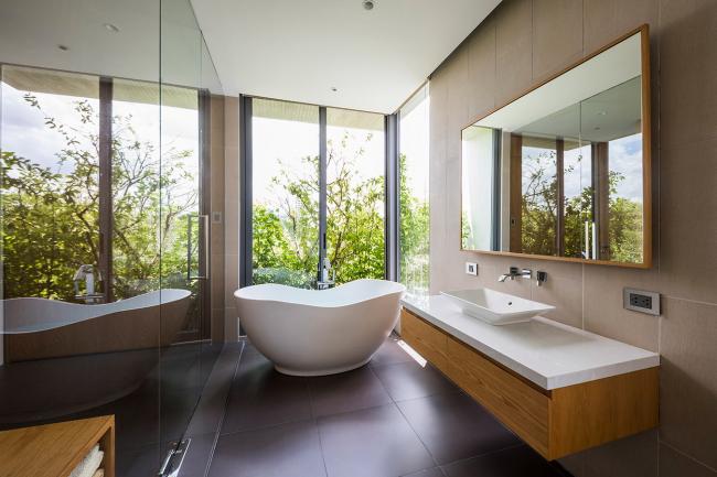 ▲浴室空间,窗外树木具有遮挡阳光,点缀空间和提高私密度的作用