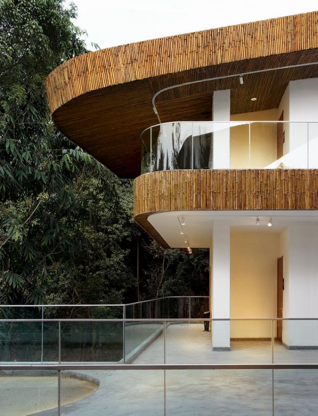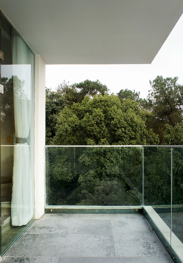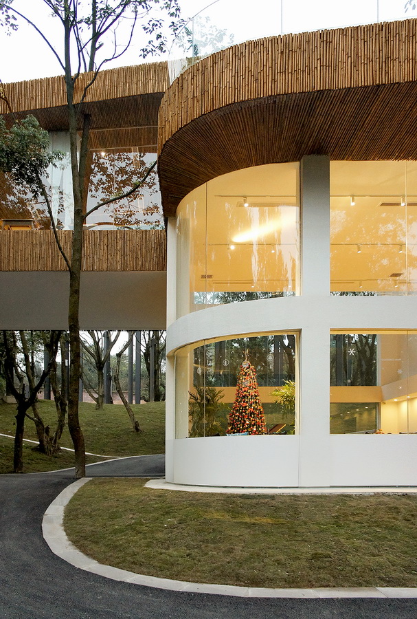 由于原有建筑各自为高度、角度、前后关系都不同,是一种各自为政的组合,没有整体的连贯性,实际使用和空间感受都受很大的局限,所以我们的改造动作除了梳理每处的(BIM教程)空间关系以外,主要就集中在“加一个室外连廊”上,让它从功能上串起所有建筑,使用者从大堂出发可以不需要经过任何踏步楼梯就能到达建筑的任何位置,自由穿梭在各个建筑间、树梢里;从体验感上说,植被包围建筑还是建筑包围植被的界限被模糊化,建筑语言和自然景观能更好的融为一体。