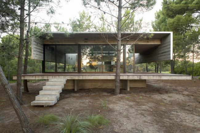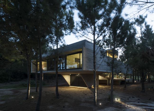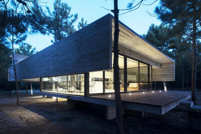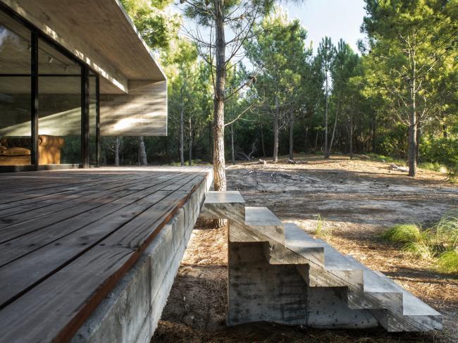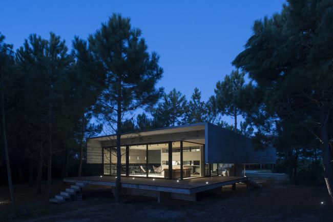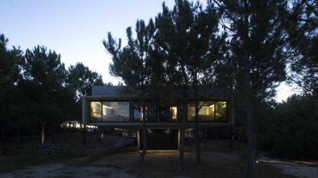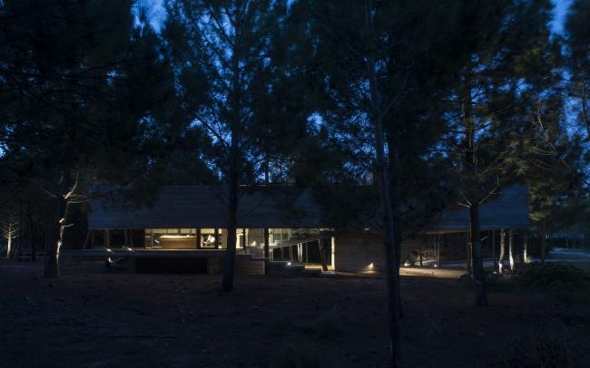 由于事务所打算保留该地块内的茂密松林,只有需要施工区域内的树木被移走了,以便建造这座房子。业主是一个由两个家庭组成的团体,他们要求设计一座既可以住宿又可以出租的房子。