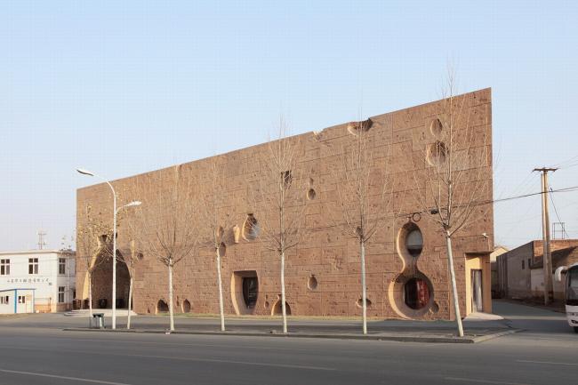 醋的古老历史和坛子、罐子等古朴的容器给予设计者最初的设计灵感。建筑的形体总体上是个简单的立方体,老子说“大象无形、大音希声”。建筑立面的纹理犹如地质学上的断层剖面,使得建筑犹如从地下生长出来一般,而立面上的凹槽则是埋在地底的古代容器印在立方体上的痕迹。
