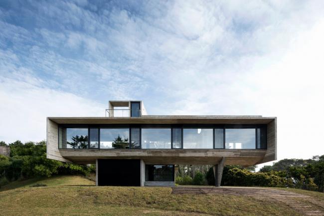 本次住宅项目就是以它所建的城镇命名的。场地的位置设置在距离海边仅有一个街区远的转角地段。由于其位置靠近海滩,住宅周围的环境中缺少树木,以干旱景色为主,这种情况则激发了事务所改善四周生活环境的意志。后侧的地形中有一处高差巨大的陡坡,仿佛一个面朝大海倾斜的沙丘。