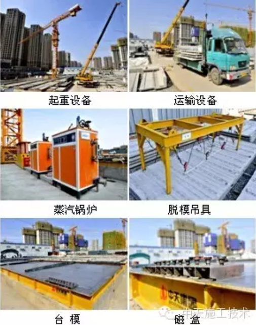 2)生产设备的确定:生产设备确定主要包括两个方面的内容:第一,根据构件类型数量统计及主体进度及构件生产周期,确定需要的台模或其他可移动模板的类型、数量;第二,依据项目施工工艺及现场实际条件,选择使用的模板形式、节点连接方法以及其他合适的辅助性生产设备。