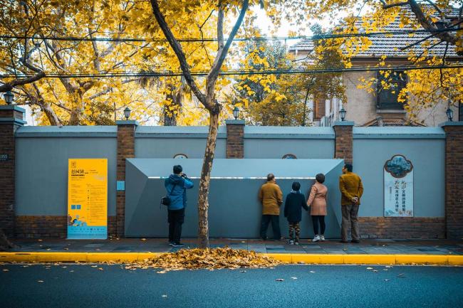 愚园路是上海市中心最具历史文脉的老街之一。愚园路墙馆是一座为愚园路的路人设计的美术馆。我们希望营造一种瞬时沉浸体验,因此构思了这座总长5.2米,紧贴墙面,占地不到1平米的超(BIM工程师)薄美术馆。在墙馆的人眼视高处,我们设置了一条长4.2米、高30毫米的玻璃槽,玻璃槽内部是一个放置展品的光腔。路人通过发光的细条形窗向内窥视,以完成对馆内艺术品的欣赏。与此同时,路人也可以通过扫描墙馆边的二维码,将自己的艺术创作向运营方UNITU进行投稿。每个月,UNITU都会筛选一位路人艺术家的作品展示在墙馆内。因此,它是一座从展出到观展完全属于路人的社区美术馆。