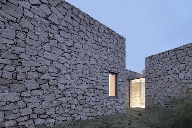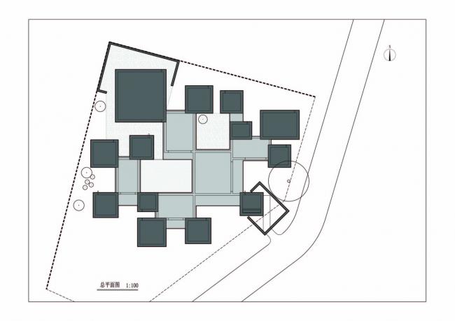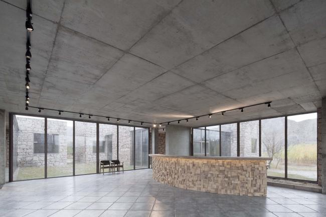 “红石山房”属于这个自然环境,就像彭乐乐的每一个作品,都属于特定的环境那样。当然更属于彭乐乐的设计理念——即与她这些年的设计语言脉络密切相关:她总是先选择最主要功能空间,并根据甲方的要求、地块的优劣、地势、日照朝向等自然环境,乃至社会风俗、周边建筑等条件去作综合思考之后,形成一个主要思路。思路一旦产生,她总是善于抓住象围棋布局中的“眼”【4】那样,首先把主要的功能空间,布局在合适的位置。然后,采用类似传统建筑中连廊的方式,串联起这些主要的功能空间,由此形成一个复杂有序并带有公共或多种灵活使用的“连接空间”,这些“连接空间”有时呈带状,有时似廊非廊,似厅非厅,或者既廊既厅,窄似廊,宽即厅,曲折回转,曲径通幽,连接着各个主要的功能空间。我知道早期彭乐乐设计的艺术家祁志龙工作室,这个建筑,“盒子”与“盒子”之间的“连廊”还只是连廊,连廊短,窄,矮,很有效率。彭乐乐一路实践下来,到了红石山房,“盒子”与“盒子”之间的“连廊”已非连廊,而是通过扩大了尺度的“连廊”让连廊感消失。红石山房一共有三组功能盒子。每组盒子的数量不同。第一组:客房,有六个“盒子”。第二组:娱乐,有四个“盒子”。第三组:餐饮,有两个“盒子”。还有一个入口独立的公共“盒子”。所有“盒子”的大小,高矮都不同,然后她用“连廊”来连接这些“盒子”,让所有的“盒子”与“盒子”之间的空间,形成类似“连廊”的公共空间,然后用玻璃封住“连廊”,造成多样并可以灵活使用的透明空间。无论是空间还是材质,“红石山房”都凸显出强烈的对比效果:粗粝的红石封闭的“盒子”与透明的玻璃空间,既突出了原始毛石与现代玻璃在材质上的强烈对比,又突出了空间的封闭与透明、内和外的对比——即进入功能空间的封闭感觉,走出功能空间,就是“连廊”的透明空间,在透明空间里,人们既可以感受“连廊”的曲折回转,又可以看到外面的树荫、大山、河滩,乃至于细细体味不同尺度的红石“盒子”、以及“盒子”与“盒子”之间的小庭院、天井、水池、各种有趣味的过道……总之就一千平米的建筑,极尽了各种空间趣味和多样的感觉。