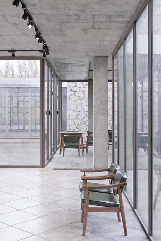 红石山房还有一些细节,值得称道,比如我在现场看到的倾斜玻璃窗户,玻璃窗户上下有一个倾斜度,很明显包头风沙大,向内倾斜的窗户,会避免风沙在窗户上的存积,当然这都得益于她“因地制宜”的设计理念。还有把窗户从外墙墙面凸出出来的设计,除了避免风沙存积,这个玻璃窗户,设计在两面粗粝红毛石的夹缝中,格外有一种异样的对比效果,如此等等,还需要那些喜欢这个建筑的人去发现更多有趣又独特“接地气”的设计细节。