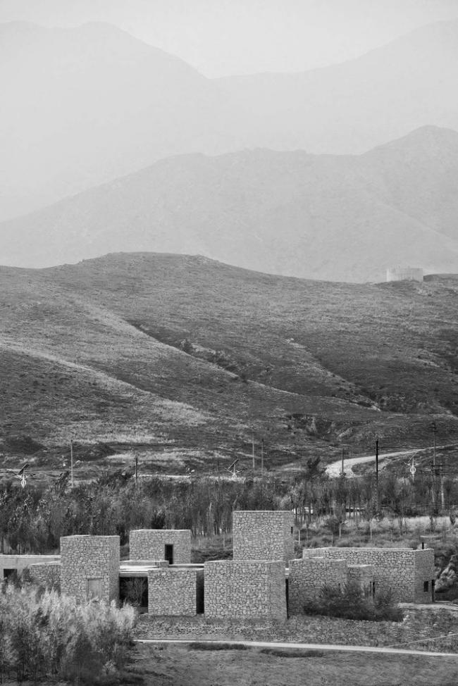 地利或者此地,“此地”可以大到指中国这个环境,包括自然的、社会的,甚至是历史传统的此地。我这里主要说的是彭乐乐红石山房的环境,目前我们看到彭乐乐的“红石山房”以及她的其他建筑,其显而易见的语言方式就是“因地制宜”。比如宋庄她设计最有代表性的作品是她自己的工作室《百子甲壹》,以及《贵点艺术空间》【2】和《向京和瞿广慈工作室》【3】。空间设计自然是第一步的,但生成空间的建筑墙体各具特点,所以彭乐乐在设计空间的过程中,就不断地考察“此地”最适合也是最能与“此地”的环境——有时是自然、有时是社会历史——有关联的建筑材料。如《贵点艺术空间》外墙体,选择了七十年代流行,至今仍然在当地民居中可以看到的“水泥花墙砌块”,这个选择,让《贵点艺术空间》这个当代建筑,与“此地”的历史产生了一种审美趣味上的关联。这是一种有创意的材料转换,因为原来的水泥砌块只是作为零星装饰在墙体中使用,而彭乐乐在《贵点艺术空间》墙(BIM教程)体的设计上,采用整个墙体的外砌方式,就让这个现在几乎消失了的建筑材料,变成一种具有当代感觉的“新材料”。而答应了甲方张建邀请之后,彭乐乐没有带任何先见的框框,去包头项目现场仔细考察了周围环境——包括当地民居、自然环境、当地风俗,在这个过程中,她发现当地盛产各种石头,颜色,密度,硬度均不同,都是砌石堰最普通最常用的材料。她经过一番考察做试墙之后,决定使用当地大量生产花岗岩板所剩余的红石废料,来作为主要建筑材料。第一便宜;第二使用这种废料所带来的效果是:除了远看大块石头的砌筑质感之外,还有近处观看时,每一块石头取完石板之后,所留下痕迹丰富而不同,形成另一种近观肌理。这和《贵点艺术空间》的取材有着异曲同工之妙。材料确定下来了,甲方就地请了十几个本村的农民,采用最原始的砌筑方式,断断续续用了一年的时间,砌出高高低低十几个方形的功能“盒子”,当这些整体造型方整简洁,但质感粗粝的土红色“盒子”,嵌入河滩林场的时候,红石山房在林场绿荫的包裹下,它的整体效果与残缺的荒山、干涸的河滩,简直就象天造地设地从这块自然环境中生长出来的!