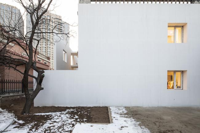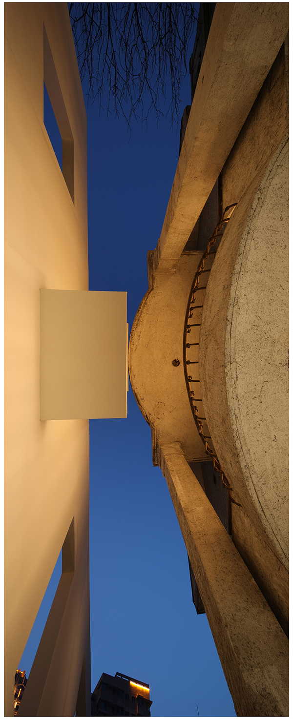 一道轻盈通透的白色墙体把城市和邻里隔离开,形成独立个性鲜明的小城市、大建筑。新建筑围绕老建筑包容并尊重他的过去,通过色彩、质感的对比及空间的重塑唤醒他的生命。暧昧、模糊的边界,由内部功能的高度复合和紧张产生外向的张力,并通过打开的空间与域外的城市发生新的对话。