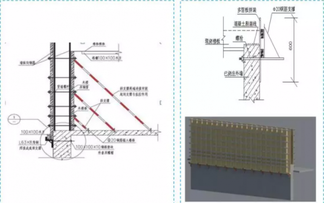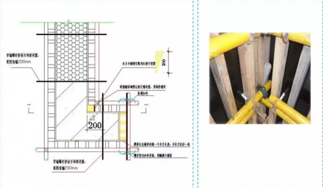1、为防止接茬部位墙体涨模,在下层墙体间隔500mm设置一道对拉螺栓。