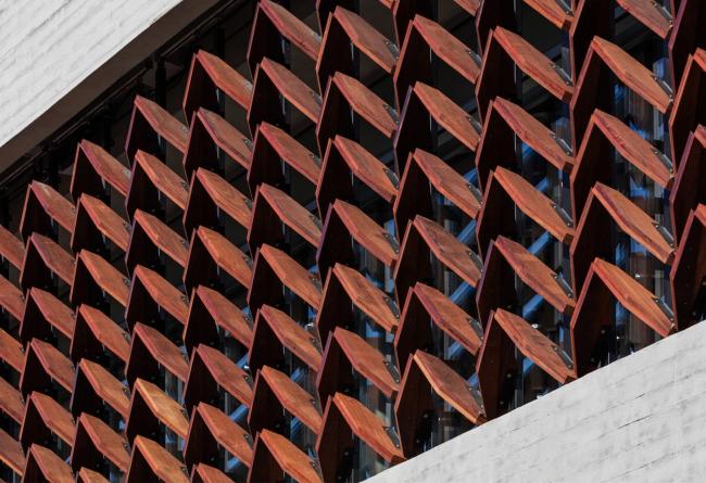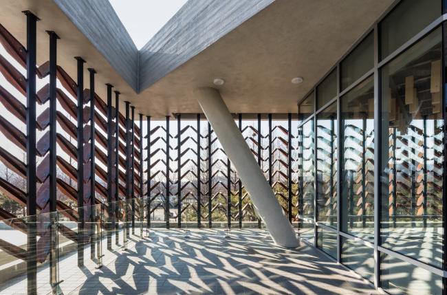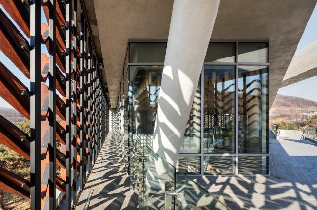 该建筑的设计策略是在仁川大公园创建一座具有象征意义的树木园,用森林式的空间感知树木。该项目将建筑抽象化,环境墙(交互式木制品构件)上的树叶随风摇摆,穿过叶子的阳光也会随之变化。这使得游客能够在不同的建筑楼层内对木材产生多重感官体验,直观地告知游客森林在每小时中发生的变化。