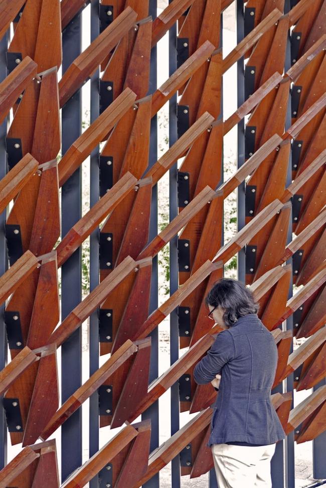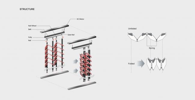 环境墙(高4米,长30米)通过反映人类活动和建筑物周围微气候的参数创建实时环境。这有助于人与建筑之间的互动和内外空间之间的交流。我们可以通过环境墙(即情景建筑)在这个空间中生成的实时情况来扩展空间体验。