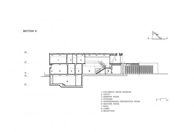本次项目是仁川都市城组织的“木材博物馆竞赛”的一等奖方案,该建筑位于仁川大公园,由韩国林业局出资建设。博物馆起名为“MOKYEONRI”,意思是不同树种之间的和谐统一,而树种的分类也进一步界定出博物馆内部的空间体验,用于感知木材的不同属性。