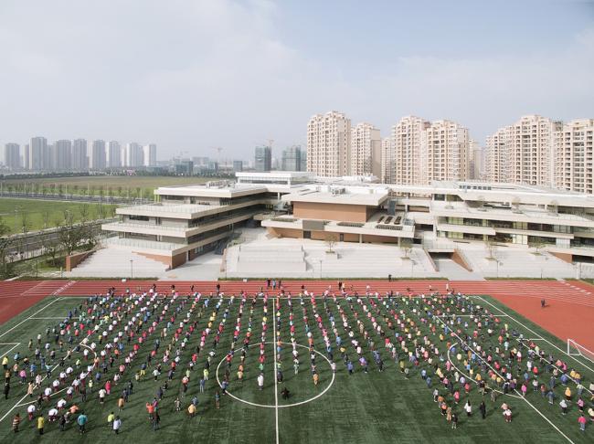 在苏州科技城实验小学的校园设计中,学校公共性最强的功能单元被主要交通空间所围绕,这使得这些单元具有一定的必达性,激发空间的多义性与活动多样性,并促使每个学生都能有效地参与到多种活动当中。方案中注入的大量社会交往空间,满足了多种课外教学功能。学生对校园空间的利用率和空间的人气之间形成了积极影响,多样化的活动则形成了校园独特的人文景观。这便是我们希望看到的——学生不仅是校园的使用者,更是校园中的一员,他们的活动、交流和欢声笑语成为了校园最核心、最动人的景观。