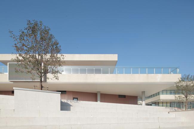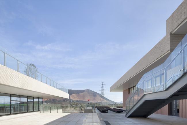 户外运动场也布置在基地东侧,与建筑的退台肌理相呼应。这种基于情感层面的操作方式将建筑界面的完整性打破,自然地流露出向自然延展的热情与态度,更是对自然景观的一种尊重的表达。