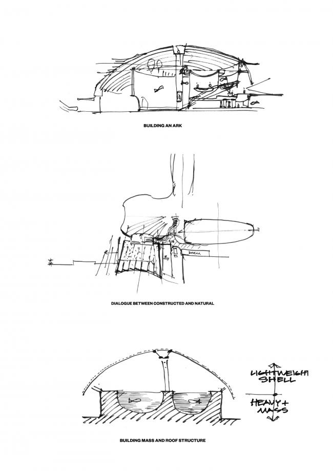 ▲设计中包含了一系列位于建筑内部和外部的饲养池