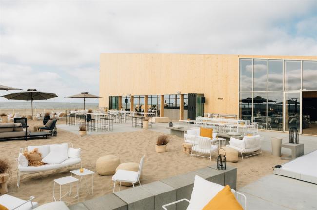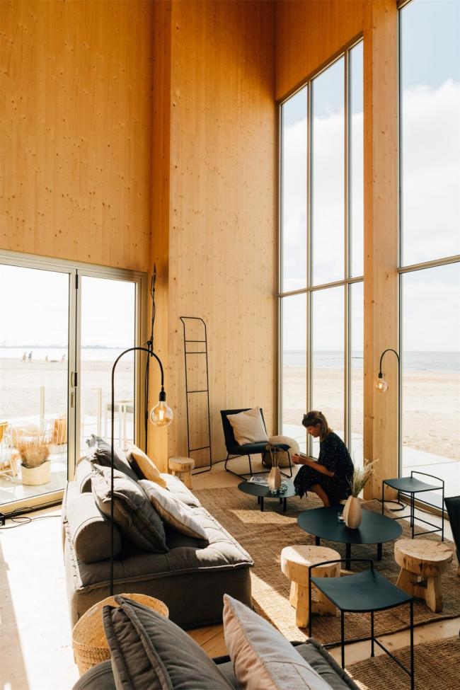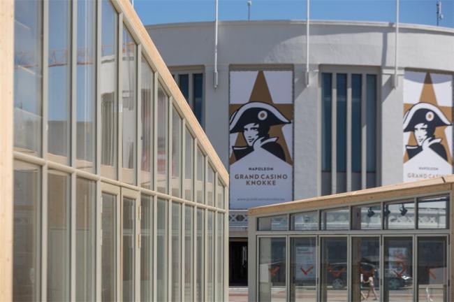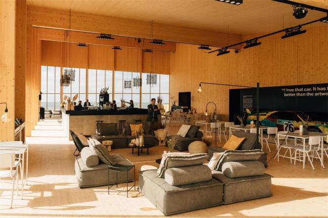为了在Knokke的海滩上实现一个临时的艺术和活动地点,两个巨大的CLT板木结构(交叉叠层木材)被雕塑设计来交付所要求的项目元素:活动/艺术博览会和酒吧/餐厅。