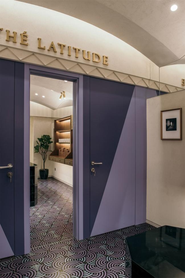 在雇主与设计师的共同商讨之下,紫色成为了THÉ LATITUDE茶岚地的品牌色,不仅用于部分产品包装上,而且大胆地使用在了室内空间。紫色所代表的自信、浪漫、经典非常契合品牌所倡导的“优雅地喝茶”的新风尚。