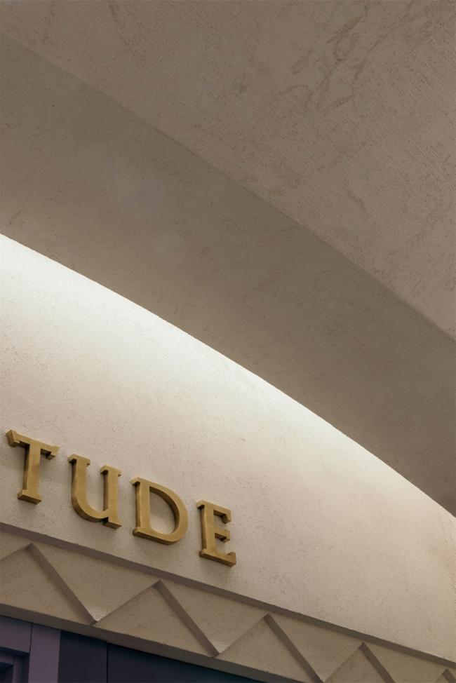 拱顶的设计灵感来自于位于土耳其卡帕多西亚的石洞古迹,顶面与墙面参照石洞的样子选用了米黄色(Beige)灰泥,具有柔和的颜色和丰富的肌理,配合暗藏式的照明,给空间奠定了经典基调。