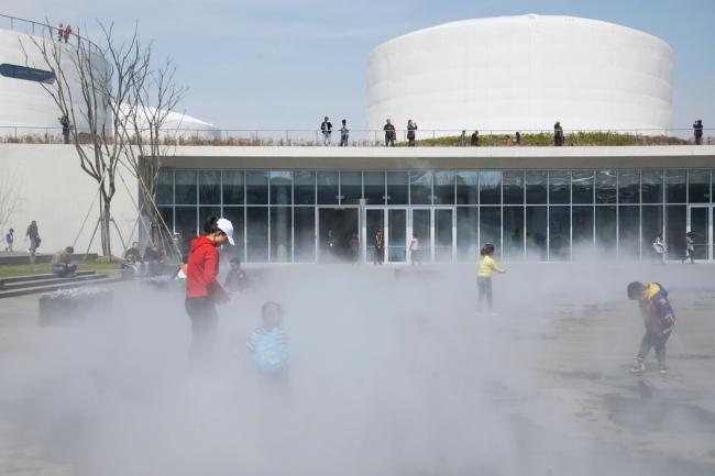 3月23日同时开幕三场展览,分别为teamLab《油罐中的水粒子世界》、阿根廷雕塑家 Adrián Villar Rojas个展以及中国当代艺术家群展《建立中》。三场高规格的艺术展览,加上春暖花开的户外公园,让油罐艺术中心在这个周末吸引了大量公众前往。