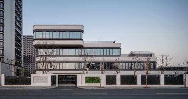 杭州市海潮幼儿园位于杭州市中心上城区望江单元,规划为16班幼儿园,用地呈现不规则形状,地块西北面为高密度住宅区,东南面为城市道路。建筑师希望在这片高楼和城市道路包围的环境中,通过设计的策略为孩子们创造一个健康快乐成长的空间。
