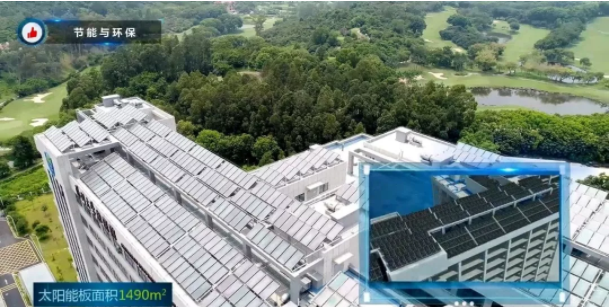 采用遮阳格栅、太阳能集热器、LOW-E中空玻璃、多联机热回收新风机等多种节能材料设备