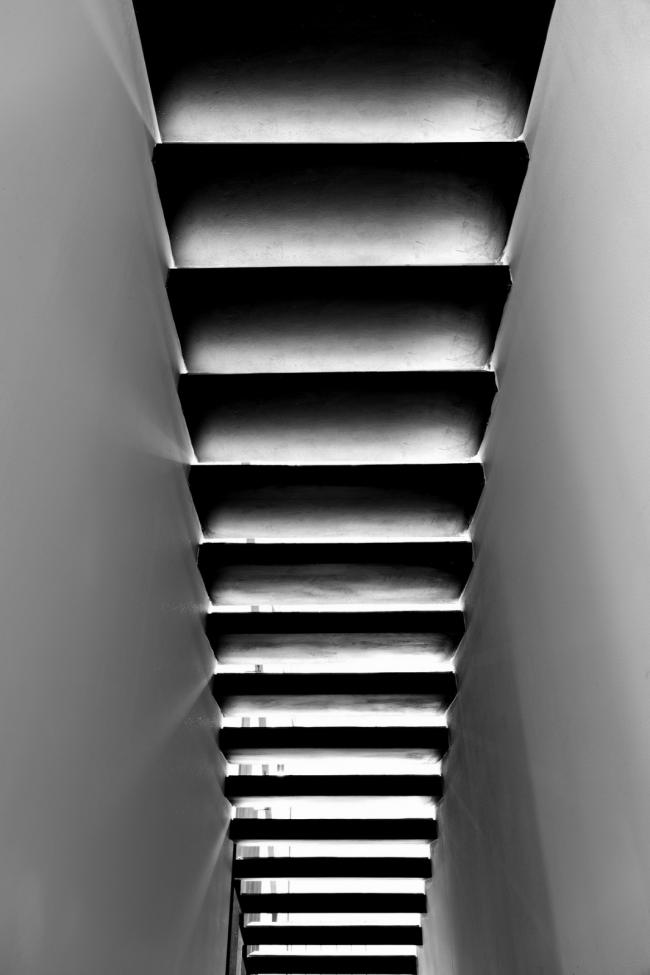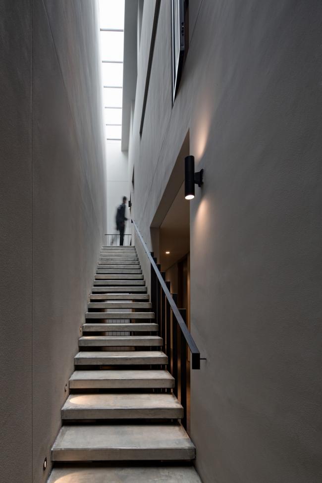楼梯解决垂直环流,新鲜空气从而流入房间,并通过楼梯上方的天窗得到更好的日照。