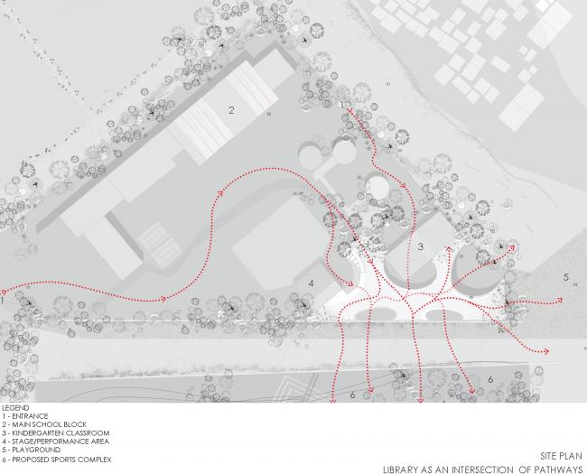 此项目是为一所Maharashtra乡下学校里的儿童图书馆进行的小规模加建工程,用地选在原有建筑和学校边界之间一道长形地块上,明显需要直线状的建筑来顺应地块周围的建筑整体。由孩子们想要上到屋顶上边的愿望所启发,我们构想出一座真正扩展了地平面的图书馆建筑。建筑室内为学习空间,上方为玩乐空间。在此地区里所能获得的有限教育资源下,我们需要丰富建筑所能带来的空间体验来使它变成课余时间聚集学生的吸引点,并希望也能吸引附近社区的居民到来。