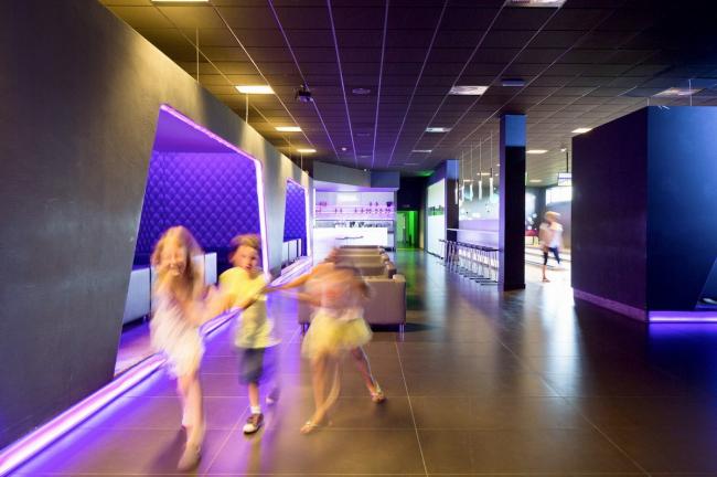 在第一层的会议部分被分为办公室和会议室。在这一部分同时有更衣室,一个购物商场,厕所和一个配有餐厨设施的餐厅。在负一层,是一个酒吧俱乐部,保龄球室和一个音乐俱乐部。除此以外,负一层还有一个配有33个停车位的停车场,一个为雇员准备的社交区域和设备室。