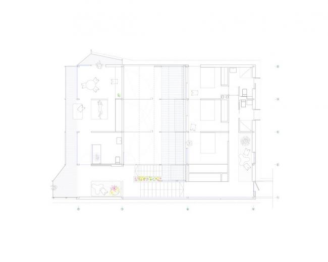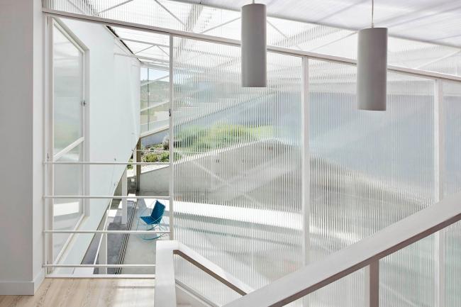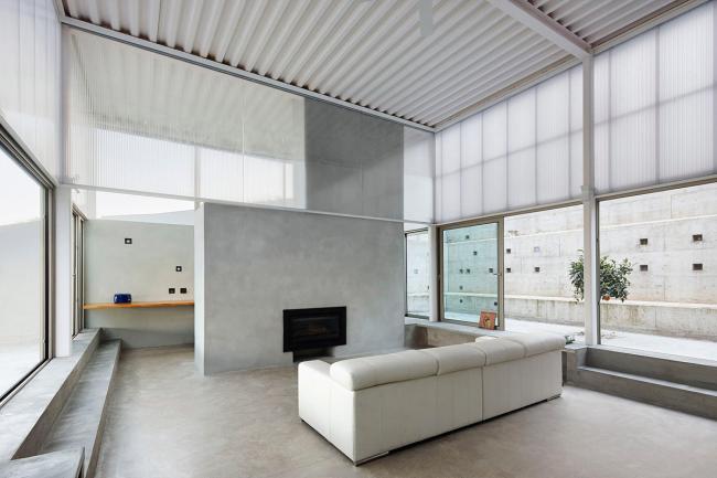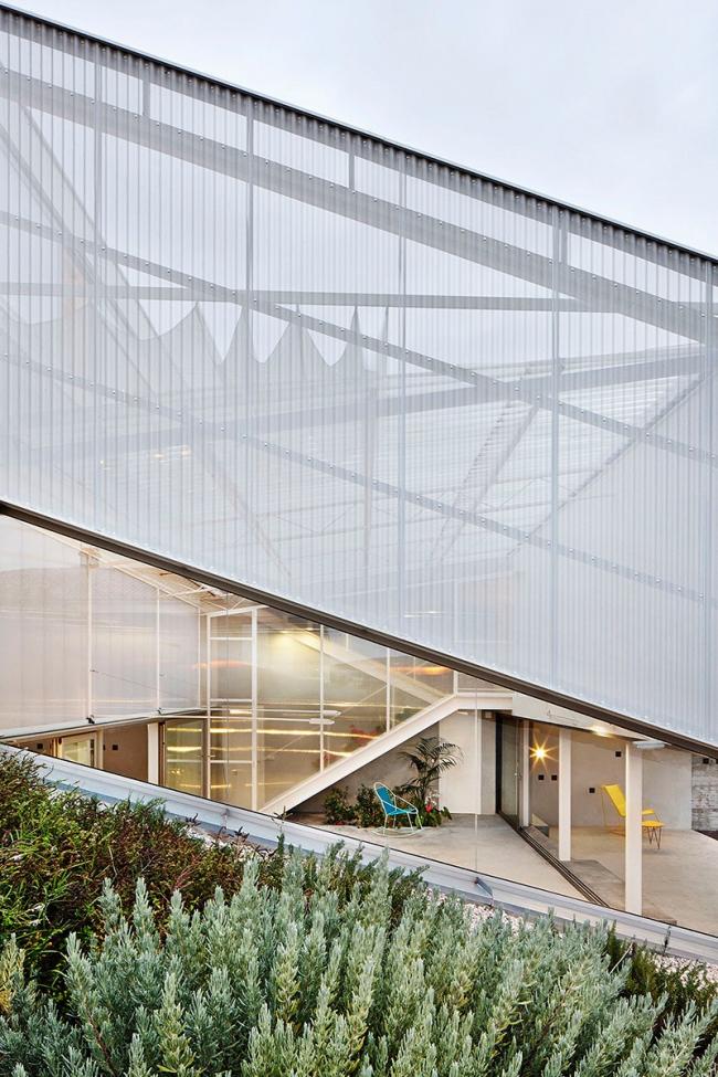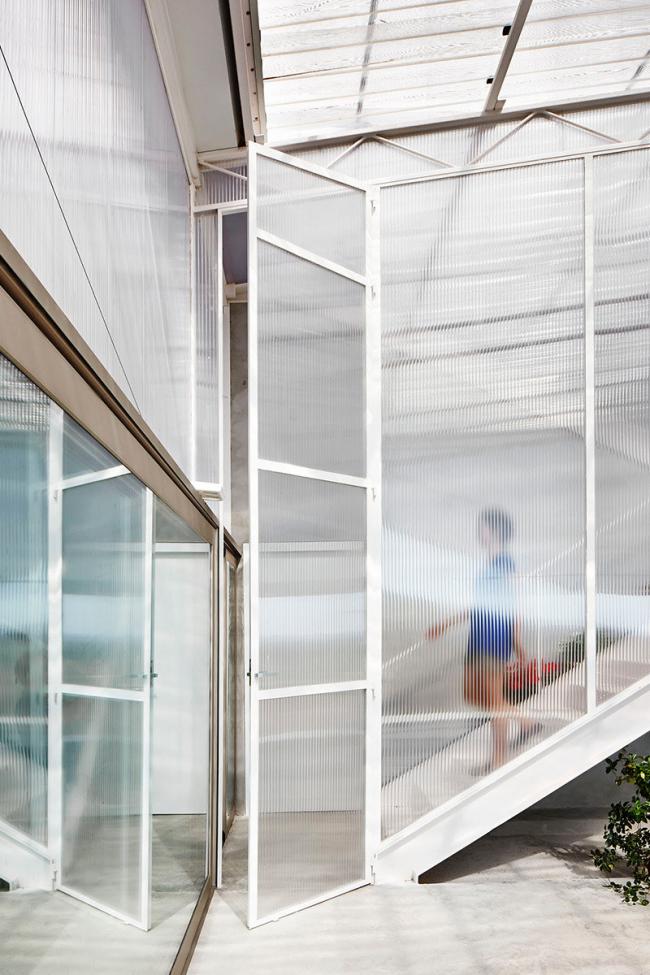 由内而外,双层壁由多孔聚碳酸酯、简单的波状聚碳酸酯过滤器、互锁的金属瓷砖、不同的玻璃,并根据其两侧气候的连续性制成。农用纺织品耗散或积聚辐射。 一个既开放又封闭的房子。看起来是封闭的地方,是气密的,却看起来是开放的。房子有一个“等待结构”,以备客户获得更高的能源效率。气候符合自然空间。 在城市,公共场所以及房屋中, 我们都是有象征意义、声音洪亮和宽敞的容器内部的建筑师,而这所房子则是一个有待开发的幕墙。四季住宅是裸露的,几乎是一张白纸; 该项目刚刚开始…