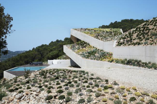 这个项目可以说是一次实践,它探索弱化建筑与周边环境之间(BIM学习)边界的方法,像是使用了某种骗术,让人们察觉不到这片土地上还存在着一栋建筑。考虑到这个“天赋之地”不仅坐落在美丽的维斯岛上,实际上它也位处于地中海,我们希望这栋房子能像苏格拉底正厅(第一座被动式房屋)那样,将古老的传统石墙重新诠释,并且创造出一种新的人为的田园地形。