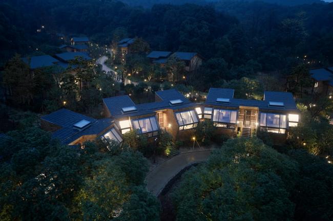 杭州开元森泊度假乐园位于有着西湖“姊妹湖”之称的4A景区湘湖旅游度假区。得益于杭州山水城市的特点,城市公共交通便可直达乐园,不出城即可享受到度假的乐趣。本项目正是乐园中的一组特色度假组团。